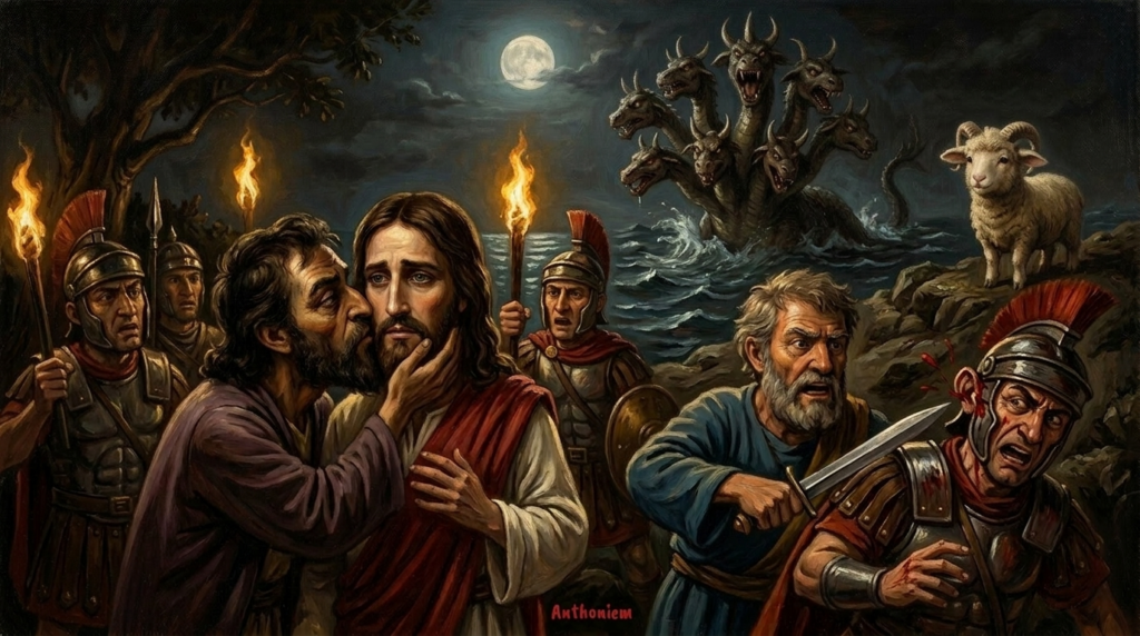 In mijn boek Ik ben het zelf! vertel ik hoe het Evangelie van Johannes en de Openbaring van Johannes thematisch parallel lopen: hoofdstuk voor hoofdstuk, laag voor laag. Wat zich uiterlijk afspeelt in visioenen en verhalen, voltrekt zich innerlijk in ons bewustzijn. Een van de meest indringende spiegels vind je in hoofdstuk 13 van beide boeken. In Openbaring verschijnen daar twee beesten: het beest uit de zee en het beest uit de aarde. Deze komen overeen met de twee hoofdrolspelers uit Johannes 13 Petrus en Judas.