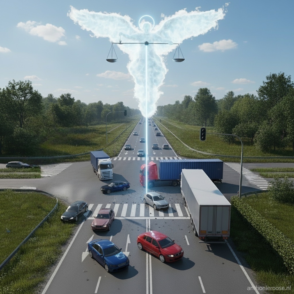 Langzaam komen we omhoog, we kijken voorzichtig om ons heen en we stappen trillend uit de auto. Wat er dan te zien is, is wat je misschien zoiets als georganiseerde chaos kan noemen. Tal van auto’s en verschillende vrachtwagens staan kriskras over de weg en tot ver in de berm. Alle voertuigen zijn rakelings langs elkaar heen geschoven. Geen enkele deuk of kras te bekennen. Geen kreukels, geen gewonden, geen doden. Niemand heeft elkaar geraakt. Het lijkt onmogelijk en toch is het waar. Als chauffeurs kijken we elkaar verschrikt en verwonderd aan. Niemand van ons is in staat om iets te zeggen. We begrijpen niet hoe dit mirakel tot stand gekomen is.