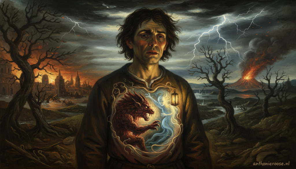 Deze twee soorten mensen kun je onderscheiden, maar het is nooit helemaal zwart-wit. Want deze twee zitten ook en allereerst in onszélf. Er huizen een beest en een geest in ons. Het beest laat zich leiden door zijn ongebreidelde instincten en begeerten. Het beest heeft nooit genoeg. Het beest is bereid om in het uiterste geval over lijken te gaan om zichzelf uit te leven en anderen te kunnen overheersen. Wie leeft vanuit zijn of haar beestbewustzijn wil altijd meer en heeft nooit rust. Ieder die leeft vanuit geestbewustzijn laat zich leiden door zijn geweten, dat ook wel ‘heilige geest’ wordt genoemd, je innerlijke besef van goed en kwaad.